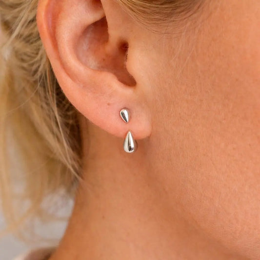 Silver Teardrop Earrings, Minimal Drop Stud Earrings for Women, Stainless Steel Waterproof Earrings, Modern Everyday Jewellery, Gift for Her